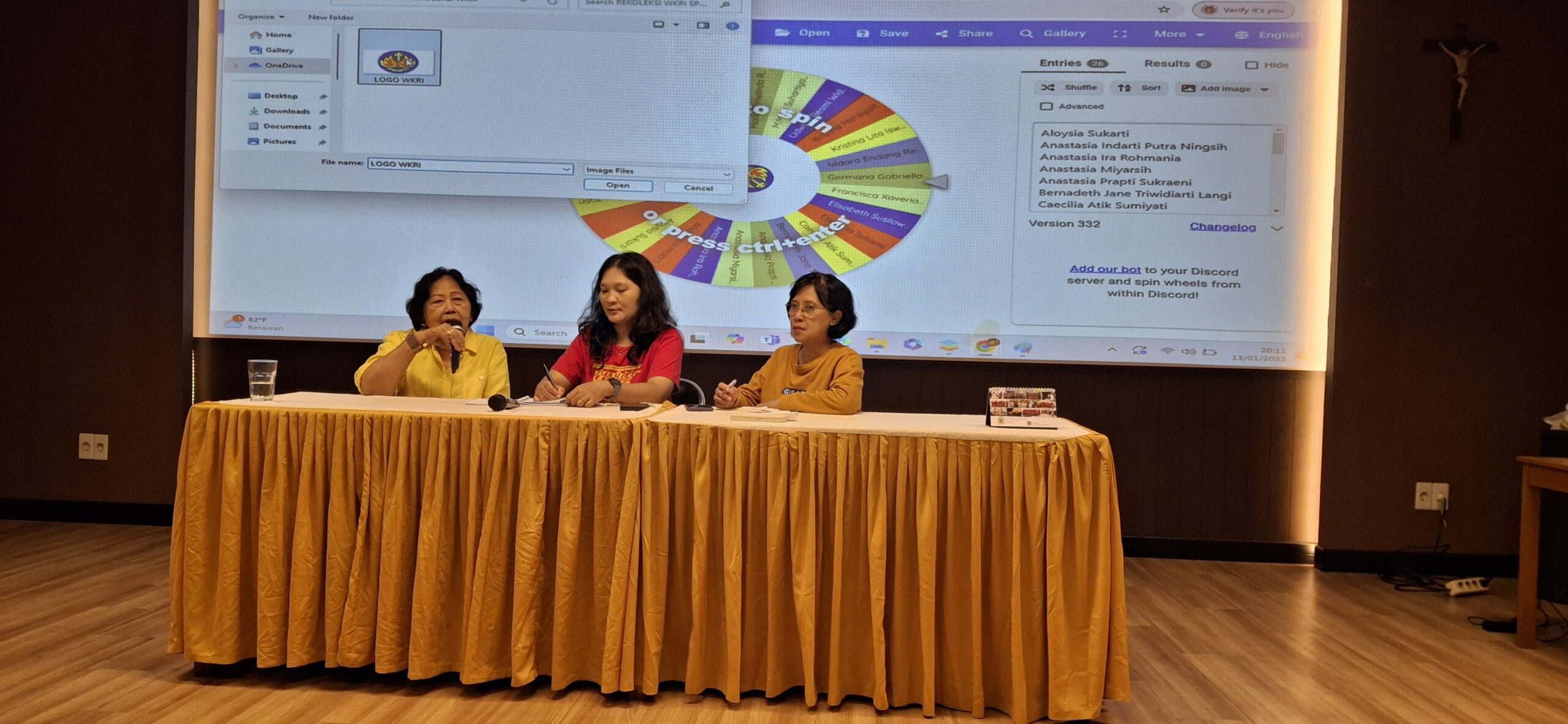 13.20 – 14.00 Sharing(Moderator (Arini) dan 2 orang dari WKRI: Ibu Veronica Kristianingsih ( Ibu Ning ) & Ibu Theresia Suhartini ( Ibu Hen)