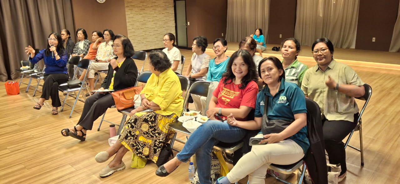 Sharing(Moderator (Arini) dan 2 orang dari WKRI: Ibu Veronica Kristianingsih ( Ibu Ning ) & Ibu Theresia Suhartini ( Ibu Hen)
