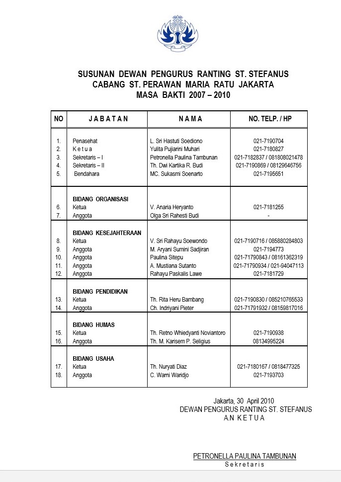Susunan Pengurus Rtg. St Stefanus Periode 2007-2010