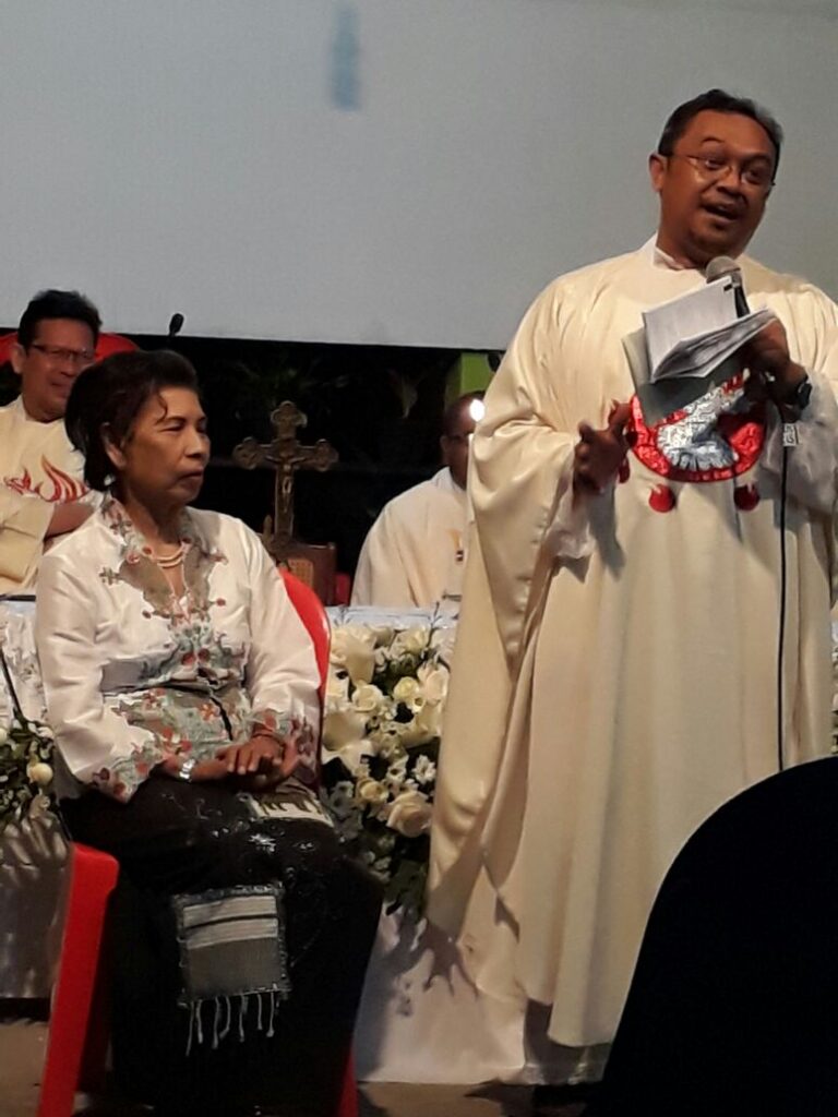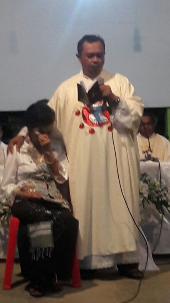 Kira-kira pukul 19.30 misa segera dimulai dipimpin salah satu murid dari romo Eko . Misa tersebut diadakan secara konselebrasi 8 romo. Dengan diiringi hujan deras dan angin yang bertiup dingin misa berjalan dengan penuh hikmat. Pada homili diisi oleh salah satu romo yang menyanyikan kidung dalam bahasa Jawa, dan romo mempersilahkan ibu Istijono untuk maju ke depan. Sambil duduk di kursi romo menyanyikan lagu tersebut dengan suara yang sangat merdu dan syahdu membuat kami yang melihat ikut terbawa suasana haru. Terlebih lagi ibu Istijono tak henti-hentinya mengusap air mata yang jatuh di pipinya.